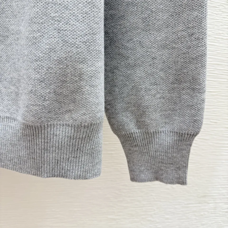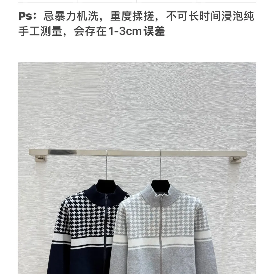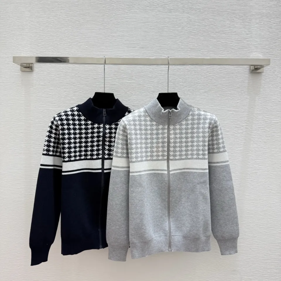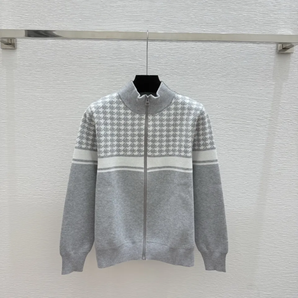 Dior Women's Luxury Houndstooth Knit Zip-Up Jacket Sweater Featuring Elegant Mock Turtleneck and Sophisticated Wool Blend Texture #B56285