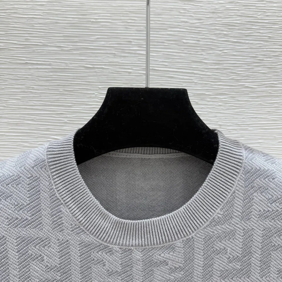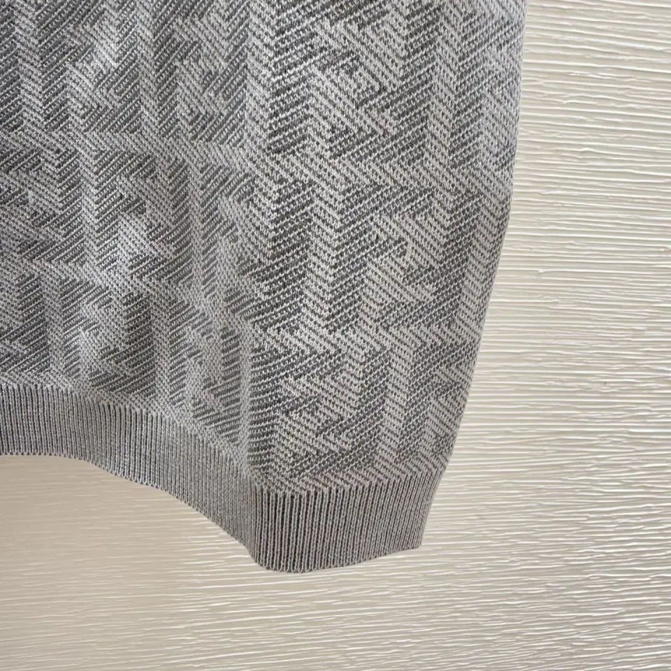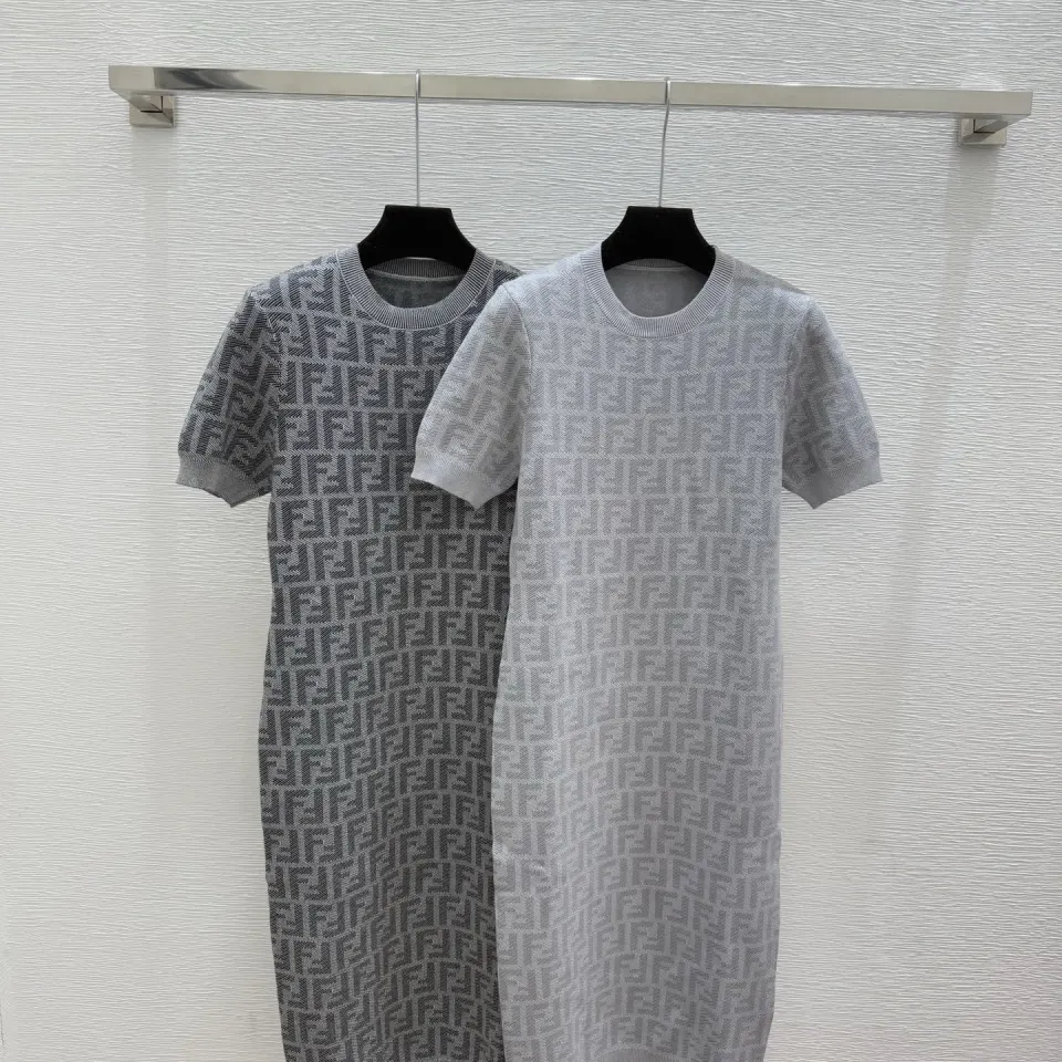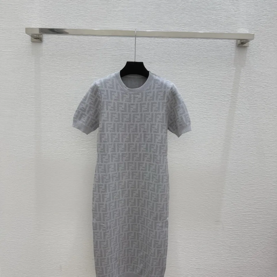 Fendi Women's Luxurious Short Sleeve Knit Dress Featuring Iconic All-Over FF Monogram Jacquard and Elegant Midi Length #B56305