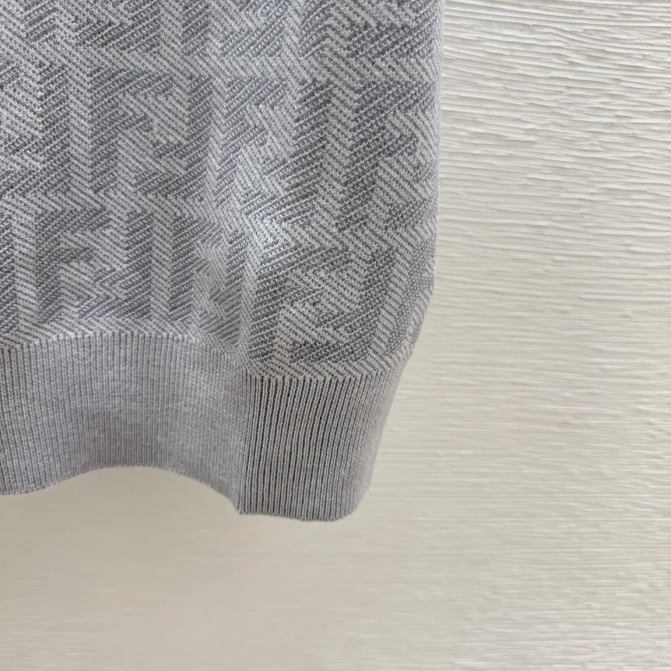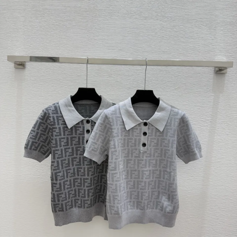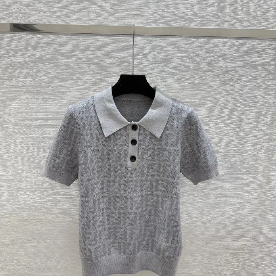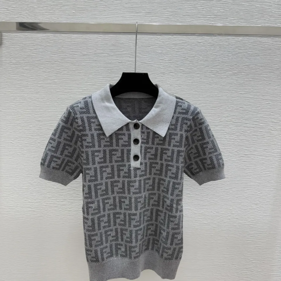 Fendi Women's Luxurious Short Sleeve Knit Polo Top Featuring Iconic FF Monogram Jacquard and Classic Contrast Collar. #B56304